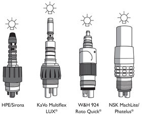 The Handpiece Experts Air Power line of German-designed and manufactured handpieces provides high torque coupled with superior cutting speed consistency. Outfi tted with a premium turbine for enhanced operating effi ciency, each handpiece offers constant, smooth and effortless cutting for a variety of procedures. The high-powered, built-in optics maintains brilliant illumination of the procedure area.